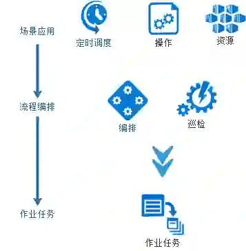 平台的运维基本单位是“操作”,通过定时调度+资源+操作可以组合成不同的巡检或者流程编排。巡检和编排最后通过解析转化为具体的作业任务。作业任务由agent或者代理agent解析后执行。