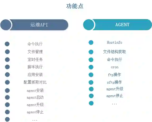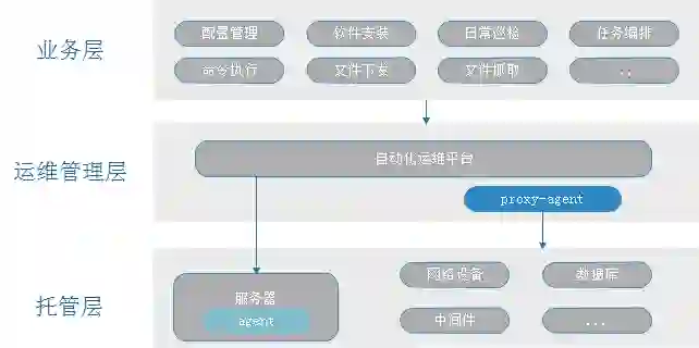 业务层:指各个运维业务的合集。运维业务调用运维API,通过运维管理层进行运维操作