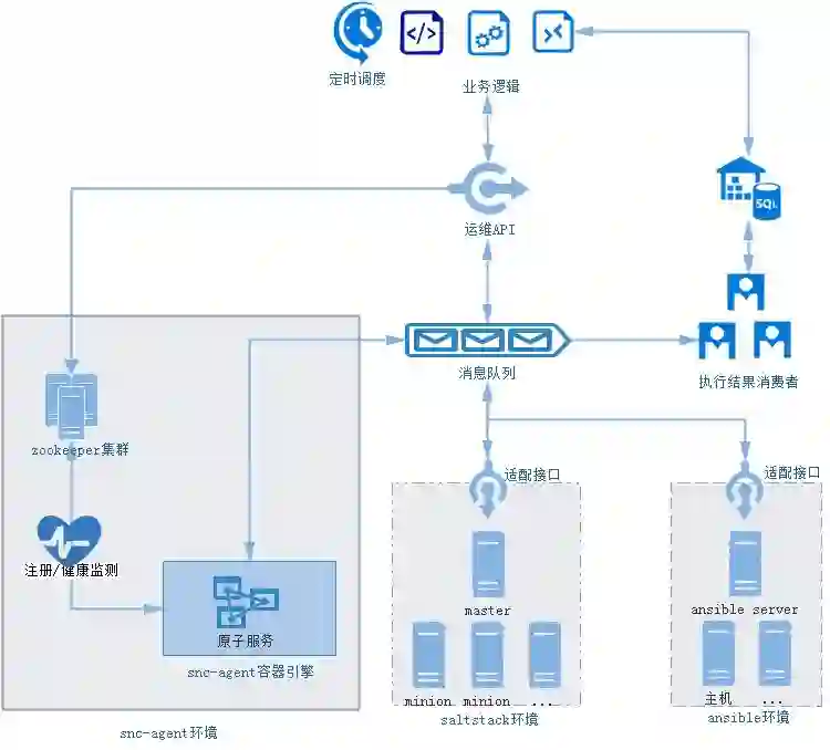 除了兼容Ansible和SaltStack环境外,增加了snc-agent集群环境,用于弥补SaltStack在非主流系统支持上的不足。