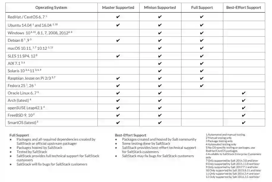 导致的结果是我们的minion无法安装,在官网中,我们找到了SaltStack支持的所有平台的列表: