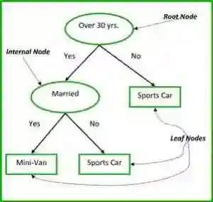 非终端节点(non-terminal node)包含根节点 (root node) 和中间节点 (internal node)。每一个非终端节点代表一个单独的输入变量 x 和这个变量的分支节点;叶节点代表的是输出变量 y。这个模型按照以下的规则来作出预测: