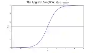 在图 2 中,为了判断一个肿瘤是不是恶性,默认变量被设置为 y=1(肿瘤是恶性的);变量 x 可能是对一个肿瘤的检测结果,例如肿瘤的尺寸。如图中所示,logistics 函数将变量 x 的值变换到了 0 到 1 之间。如果概率超过了 0.5(图中的水平线为界),肿瘤就被归类为恶性。