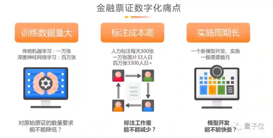 首先,金融机构严格的监管以及数据的私有化决定了数据获取成本很高,考验AI能否用更少的数据解决同样的问题;第二,基于少量数据样本训练的AI模型是否能达到非常高的准确率去很好地解决业务问题;第三,业务场景非常多,例如银行、保险、证券等场景涉及不同业务规则、流程操作,金融机构往往希望模型快速上线,一年内开发100个流程应用涉及到的模型可能有1000多个,这些挑战决定了需要不同AI模型和应用的组合能力来解决复杂业务问题。