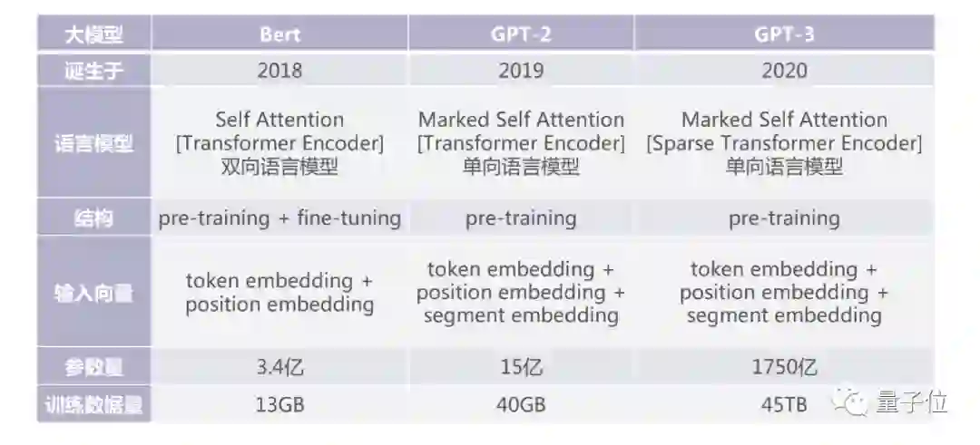 2019年,出现GPT-2模型,参数量比Bert多五倍,达到15亿,这里训练数据又多了三倍,达到40GB。到了2020年,自然语言又有了大发展,提出了GPT-3模型,含有1750亿个参数,数量多了100倍,训练数据翻了1000倍到45TB。当再使用这些模型去解传统的自然语言问题时,使用非常少的数据模型就能够快速适应到问题所对应的具体场景。