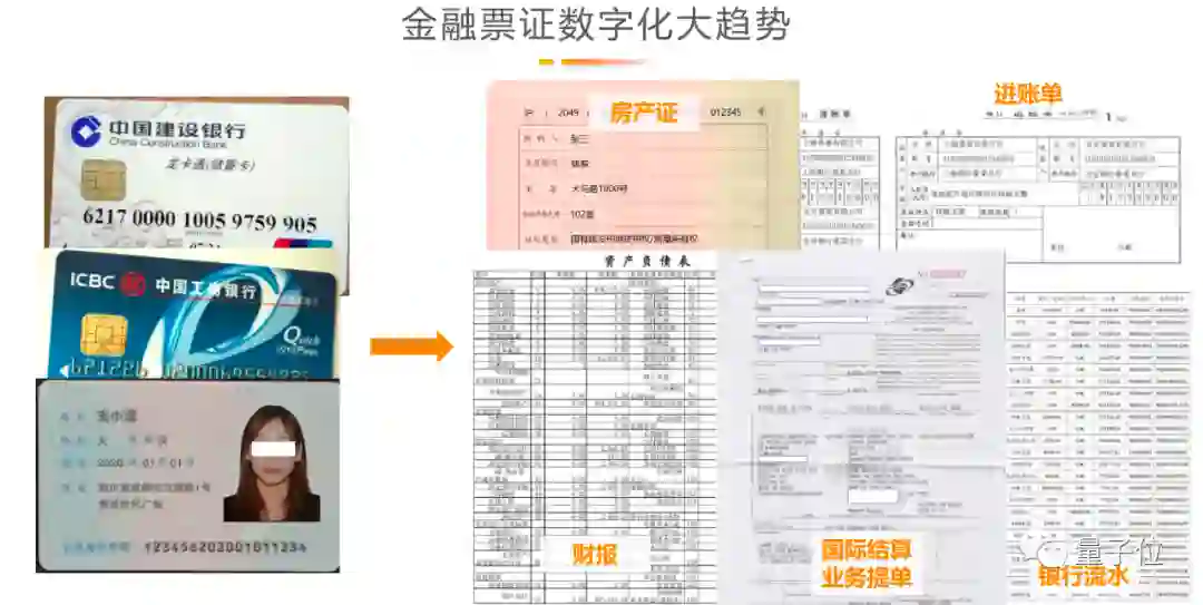 金融领域中各种银行卡、身份证的数字化大家早已经习以为常,这些数据对应的模型相对简单。但涉及到各种进账单、财报更复杂的证件或是国际结算单里面的提单,这一类模型要复杂和难很多,这是金融机构尝试做数字化的主要项目内容。
