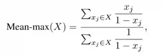 其中max函数用于为每个物体选择最佳锚框。在训练期间,从一个锚框集合A中选择单个锚框,然后使用该锚框来更新网络参数θ。但在训练早期,对于随机初始化的网络参数,所有锚框的置信度都很小,具有最高置信度的锚框不一定合适。因此,我们使用Mean-max函数选择锚框,定义如下: