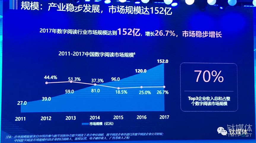 如今,更多的娱乐形式正在与网文争夺用户的时间和兴趣,不过数字阅读一直高速增长,成为了出版行业难得的一抹亮色。2017年,阅文、掌阅、中国出版、中国科技出版等主流数字阅读企业,出版企业接连成功上市,资本相继涌入,数字阅读市场备受关注。