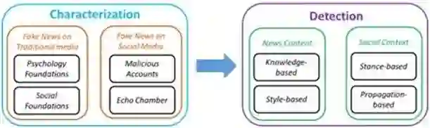 Shu, Kai, et al. "Fake News Detection on Social Media: A Data Mining Perspective." ACM SIGKDD Explorations Newsletter 19.1 (2017): 22-36.