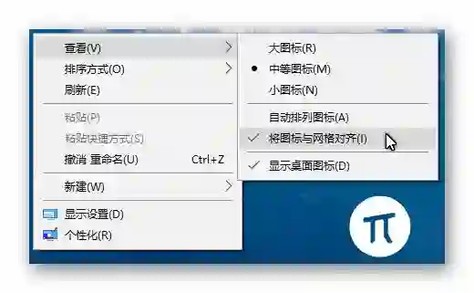为了桌面的整洁,先将所有的 图标网格对齐。