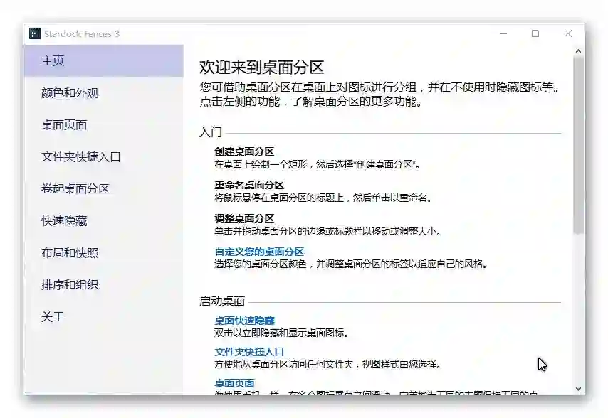 Fences 最基础的功能就是 把桌面分区划分为多个区块进行管理。