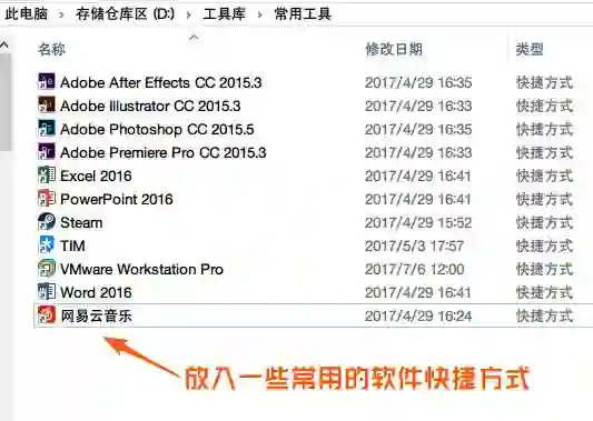 把常用的一些 软件的快捷方式 复制 进这个文件夹中。