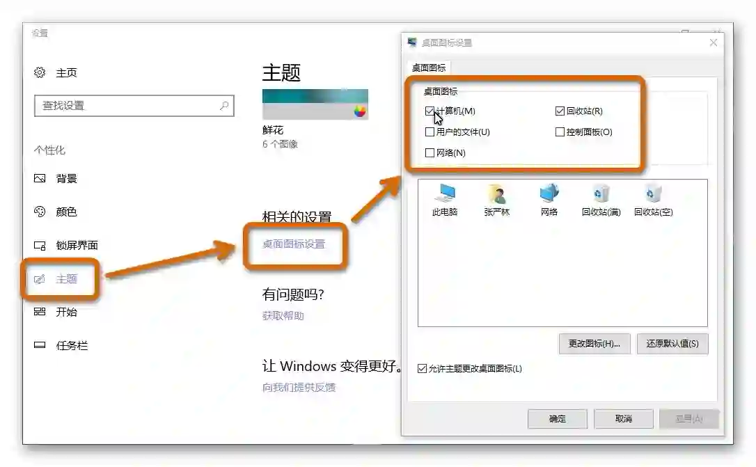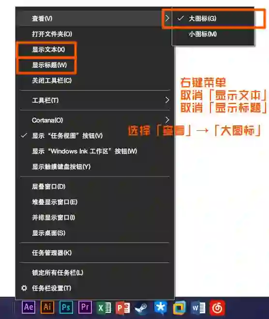 右键 || ,依次取消显示文本、显示标题,再选择查看 → 大图标。