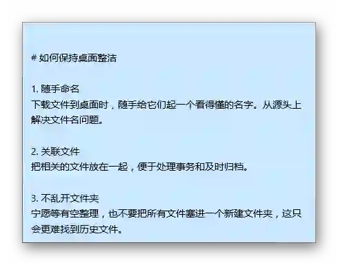 完成整理和归档工作只是一时的。在日常使用中,很多人依然会随手将新的文件放在桌面上。时间久了又会回归到最初的状态。