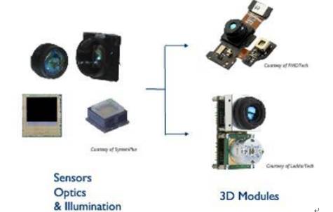 发射端上新增了红外激光发射器和辅助元件,包括衍射光栅和光学棱镜部件(如准直镜头);在接收端,新增红外接收部分,包括镜头、红外传感器和窄带红外滤光片;在图像处理器芯片上,由于算法上的复杂性,也比简单的2D成像芯片成本更高。