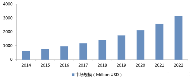 市场研究机构预测,2015年VCSEL市场规模为9.546亿美元,至2022年预计将增长至31.241亿美元,2016~2022年期间的复合年增长率可达17.3%。