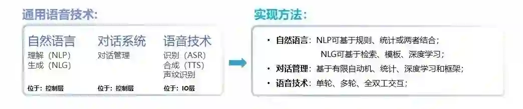 先通过语音识别模块将自然语言转换成文字,随后将文字处理成词或句子向量,进入对话管理系统后,进行模型匹配和生成,把问句生成答句,再通过语音合成把文字转换输出给用户。