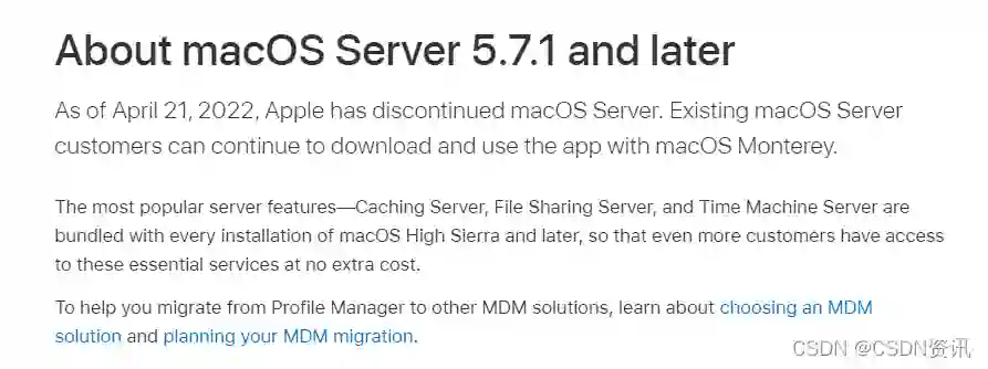 然而,苹果的一份公告让服务 23 年的 macOS Server 正式停用。自 2022 年 4 月 21 日起,Apple 已停止使用 macOS Server 服务。现有 macOS Server 客户仍可购买、下载与 macOS Monterey 一起使用。该服务的目前售价是20美元,但苹果将停止进行更新及安全修复,即彻底停服。