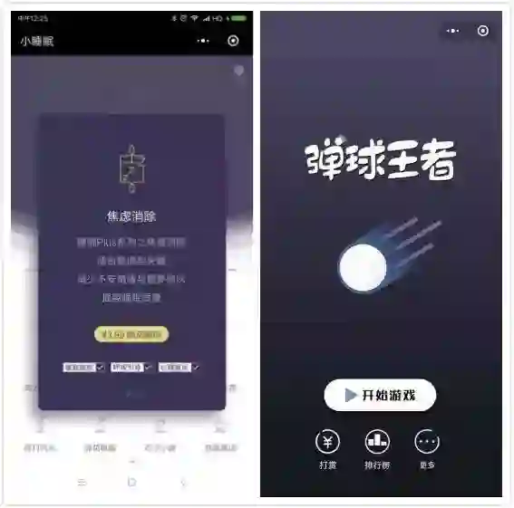 ▲左边是听音乐的小程序,有购买模式;右边是竞技类小游戏,有打赏模式