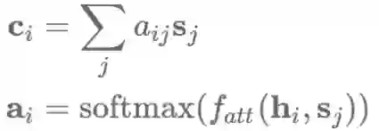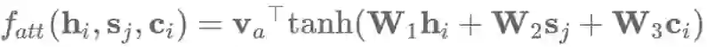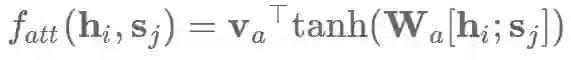 其中Va和Wa是学习到的注意力参数。相应地,我们也可以使用矩阵W1和W2分别对hi和sj作相应的变换,然后求和: