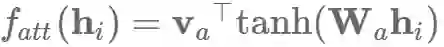 原始的注意力机制 使用了一个单层的隐藏层前馈网络来计算注意力的对齐关系,如下公式: