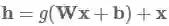 残差连接的提出最初是用于计算机视觉领域,它是在2016年的ImageNet大赛上夺冠的主要原因。残留连接的方式比高速公路层更为直接,使用如下的函数:
