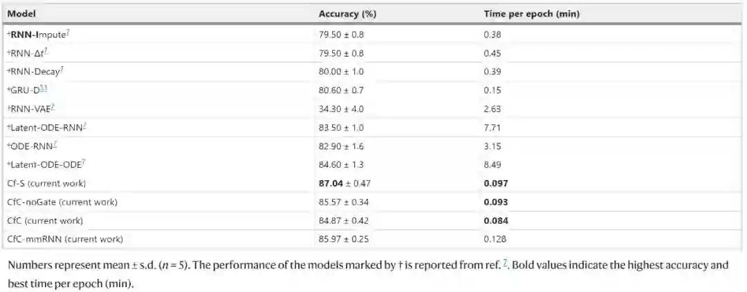 与基于微分方程的对应模型相比,CfC 在训练和推理方面速度要快 1 到 5 个数量级。更重要的是,与基于普通微分方程的连续网络相比,CfC 可以很好地进行扩展。最后,由于 CfC 模型源自 liquid 网络,与先进的循环神经网络模型相比,CfC 在时间序列建模方面表现出良好的性能。