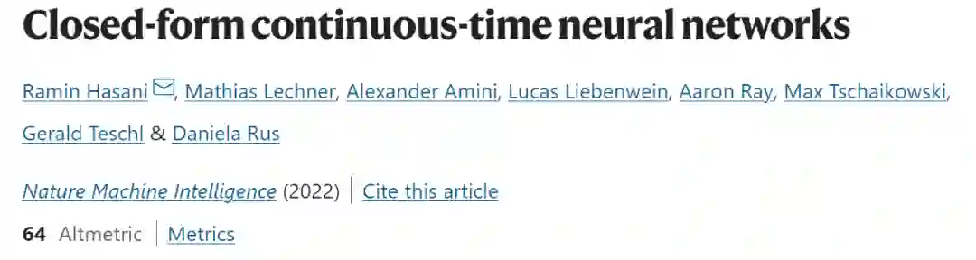 这种 closed-form 的近似方法让该研究成功求解了描述神经元和突触相互作用的微分方程,而这是自 1907 年以来首次攻克这一数学难题,将让神经网络的研究获得质的飞跃。论文第一作者、MIT CSAIL 研究科学家 Ramin Hasani 也在推特上激动地发文称解决了这个百年难题。