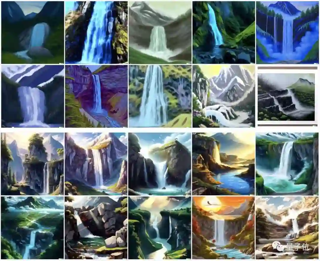2022年斯隆研究奖获得者,MIT电子工程与计算机科学系助理教授Phillip Isola在Twitter上做了个有趣的试验。用0个very和22个very分别修饰了“一幅画,画中一座山紧邻瀑布”这一提示。