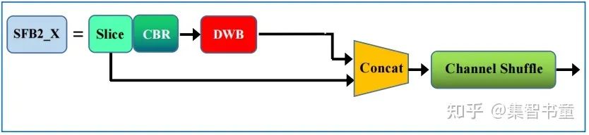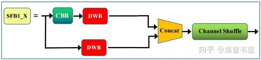上图中(a)(b)是ShuffleNetV1的结构,而后面的(c)(d)是ShuffleNetV2的层结构,也是YOLOv5 Lite中的主要结构,分别对应的是结构图中的SFB1_X和SFB2_X
