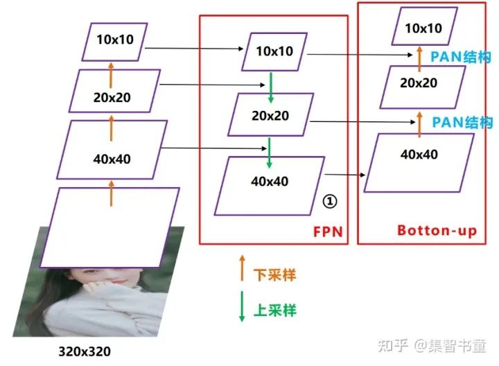 这样结合操作,FPN层自顶向下传达强语义特征(High-Level特征),而特征金字塔则自底向上传达强定位特征(Low-Level特征),两两联手,从不同的主干层对不同的检测层进行特征聚合。