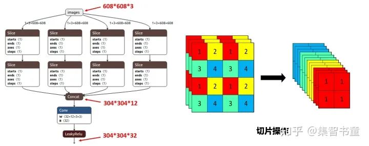 相当于是将空间信息绕到了通道信息中,cat后输入通道变成4倍,再通过conv得到新的featuremap,这样做的好处就是保持了下采样的信息没有丢失,图像的信息都保留了下来,但是在浅层中的应用,作者也表示了单纯是从计算量和参数量的角度上去设计,因为如上的所述的信息保存在浅层的意义并不大。所以后来查了下,作者的设计原因就是:为了减少浮点数和提高速度,而不是增加featuremap。