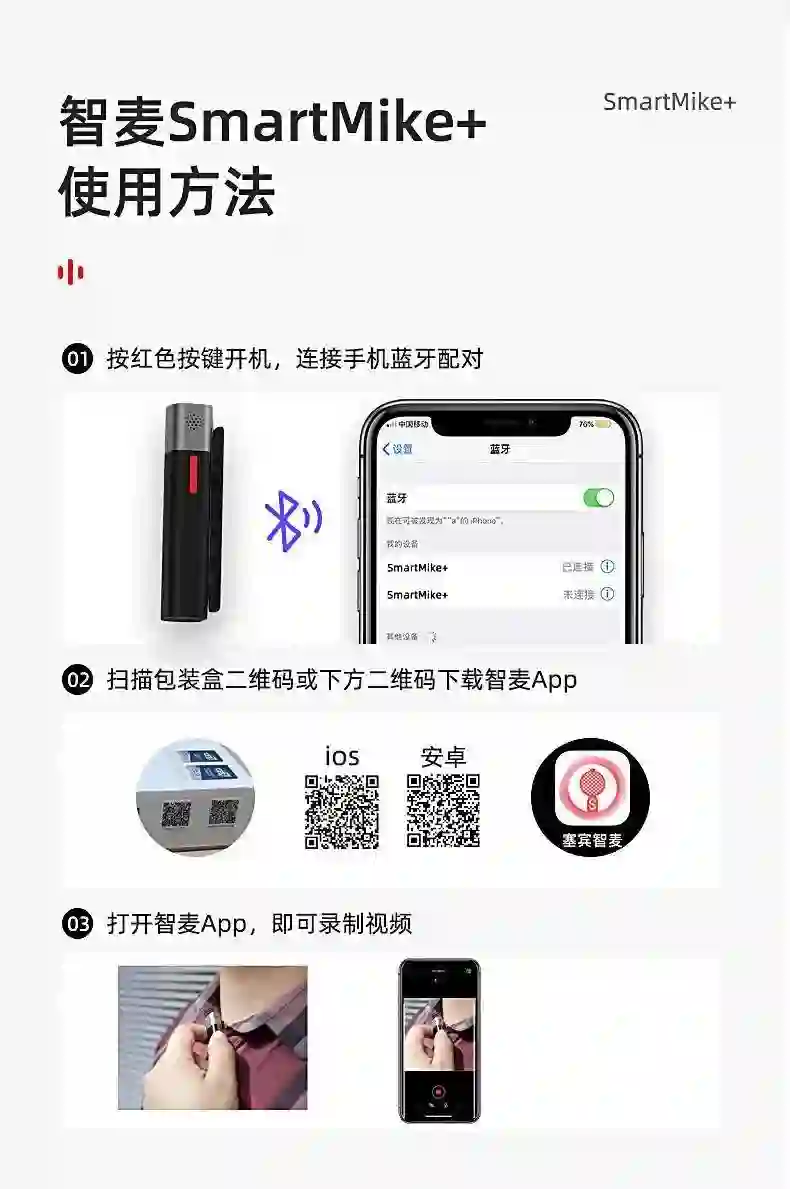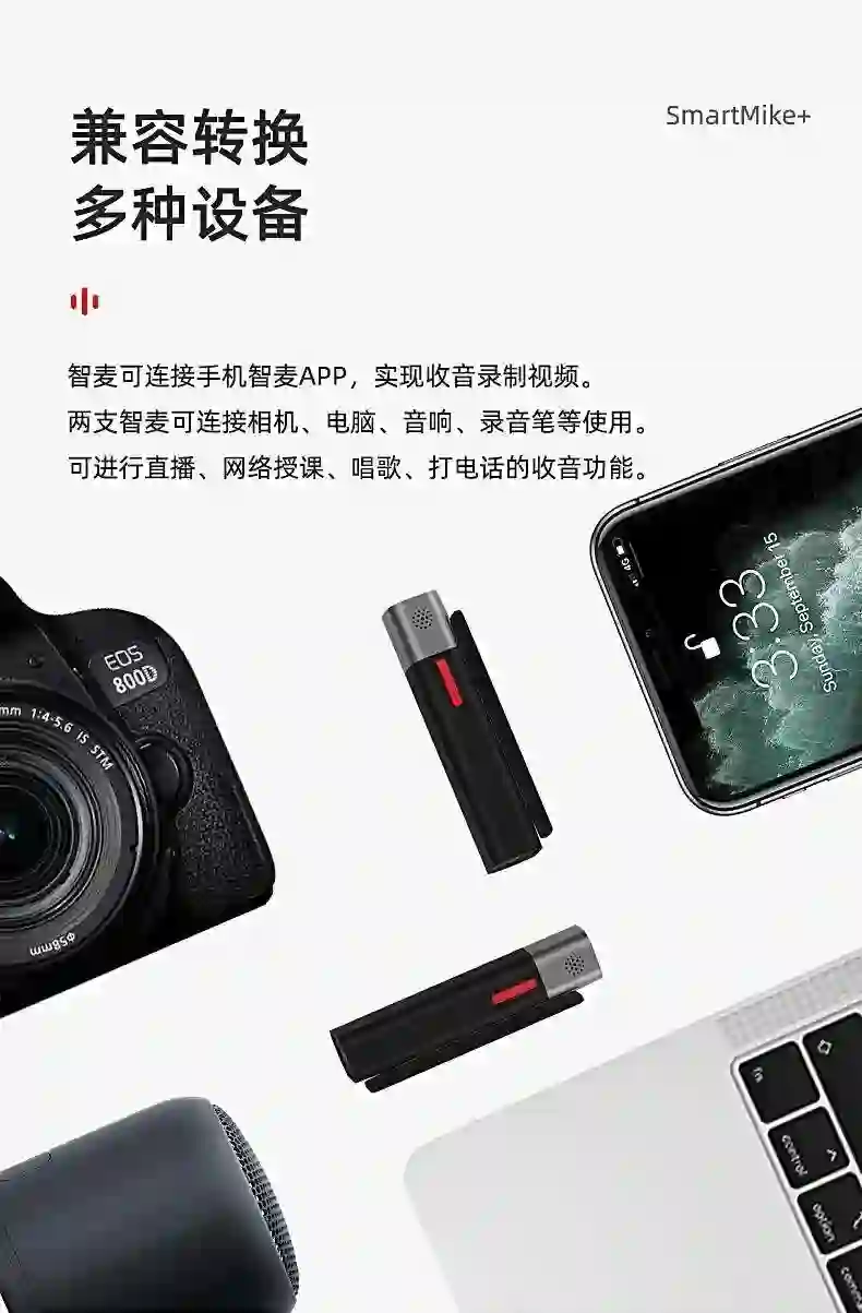 智麦 SmartMike+ 无线智能麦克风组合,包括