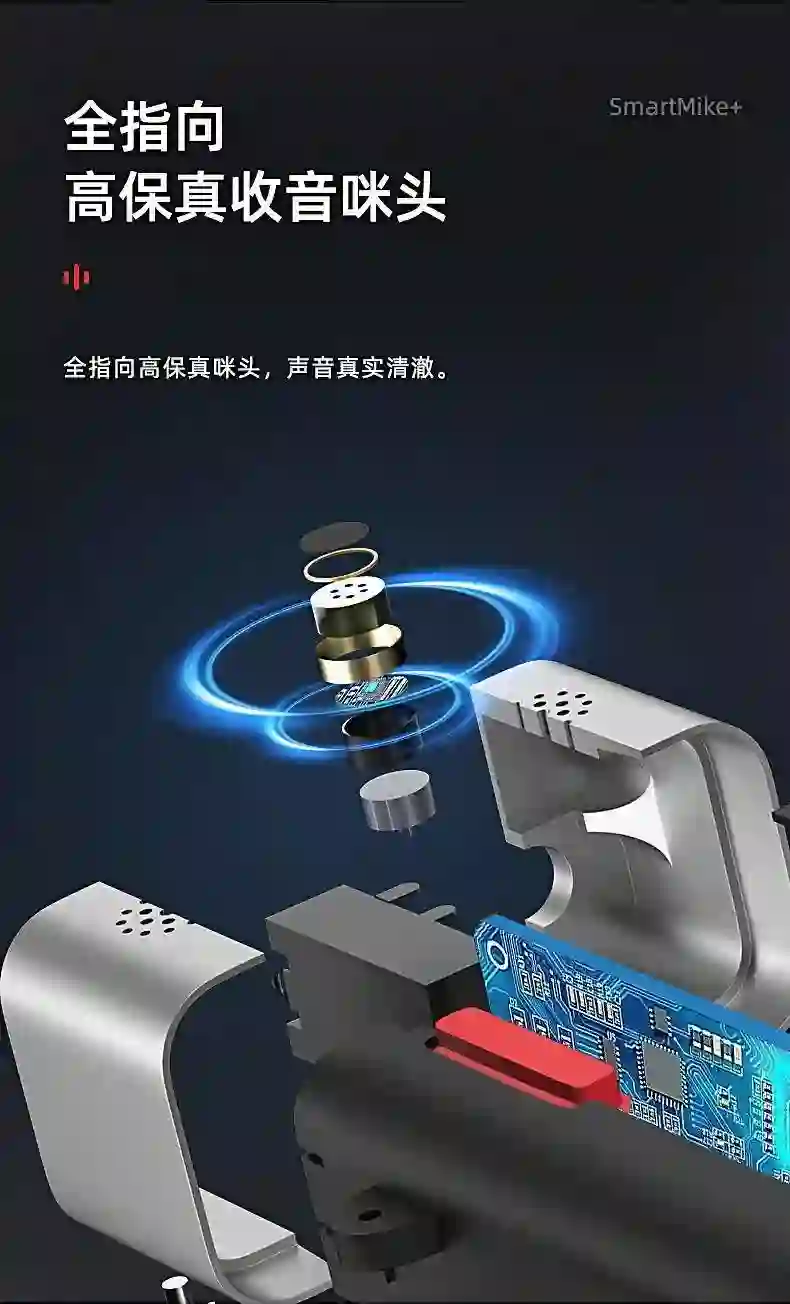 具备轻量化设计,佩戴更便携;声学降噪,降低周围噪音;360° 全指向收音;AI 智能语音识别,支持字幕实时输出等功能。