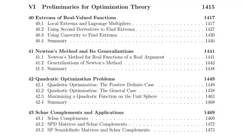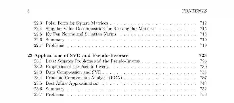 相信许多做机器学习研究的小伙伴都有着或多或少的数学知识方面的困扰,下面这本书是宾夕法尼亚大学计算机和信息科学系教授Jean Gallier的开源书籍,不但涵盖了与机器学习相关数学知识的,而且对于其应用方面也做了相关介绍。