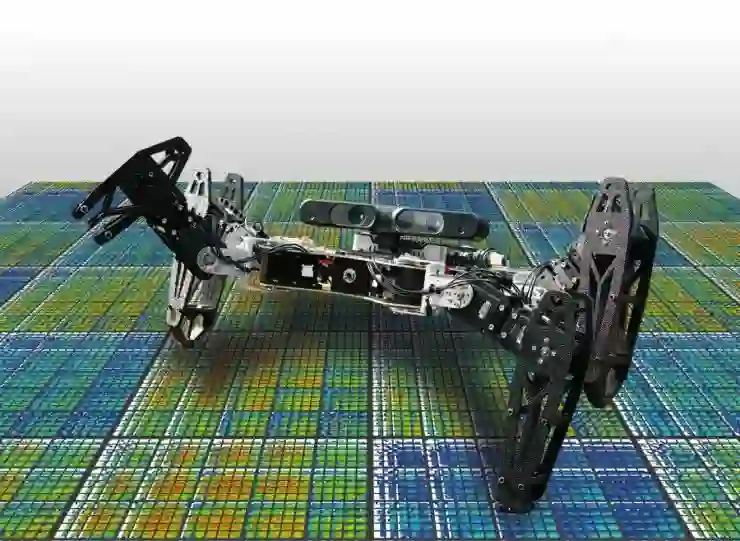 图 5:六腿机器人。机器人利用离线模拟演变的结果快速适应各种损坏情况,例如断腿。彩色地板上的每个点表示不同类型的步态,即:步态使用不同比例的机器人双腿。假定这张地图上的单元格需要机器人不用腿走路,那就很难填充了。但是,令研究人员惊讶的是,进化发现了一种方法。