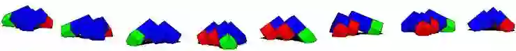 图 11:以静态运动视角看进化步态的小样本。这产生了惊人有效和逼真的行为,软机器人从面板左侧向右侧前进。