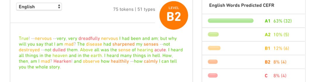这是埃德加·爱伦·坡(Edgar Allan Poe)小说《泄密的心》(The Tell-Tale Heart)中一个神经过敏的角色的内心独白,它以一种让人仿佛身临其境的感觉开头,吸引了广大的读者,也为我们提供了向「多邻国」(Duolingo)语言学习故事的读者展示的引人入胜的素材。但是对我们的学习者来说,英语常常是他们的第二语言,因此我们努力将这种材料改编成更简单的形式,同时又保留其核心内容。例如,我们可以将以上段落重写为以下文字,以供英语初学者阅读学习: