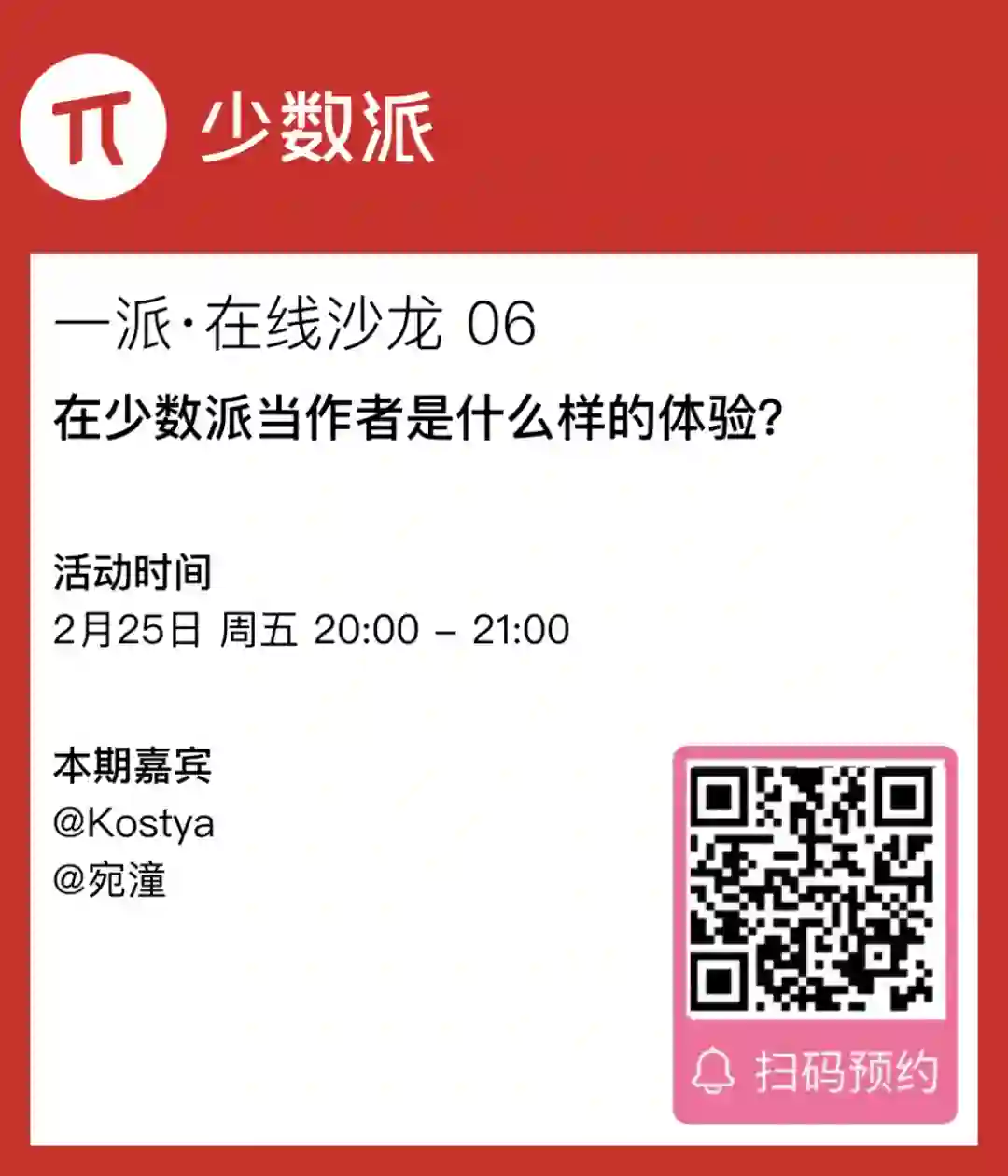 那么,在少数派当作者,到底是一种什么样的体验呢?欢迎参加