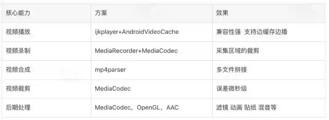 比如外卖的视频拍摄功能要求在竖屏下保证16:9的视频宽高比,这就需要对原有的采集区域进行截取,视频段落的裁剪支持不够等,业务场景的差异导致了实现方案存在巨大的差异,故放弃了大众点评App UGC方案。其他的一些开源方案(比如Grafika等),也无法满足要求,这里不再一一赘述。