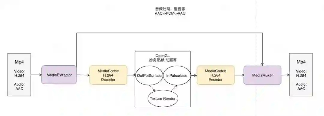 视频处理是整个视频能力最核心的部分,会涉及硬编解码(遵循OpenMAX框架)、OpenGL、音频处理等相关能力。