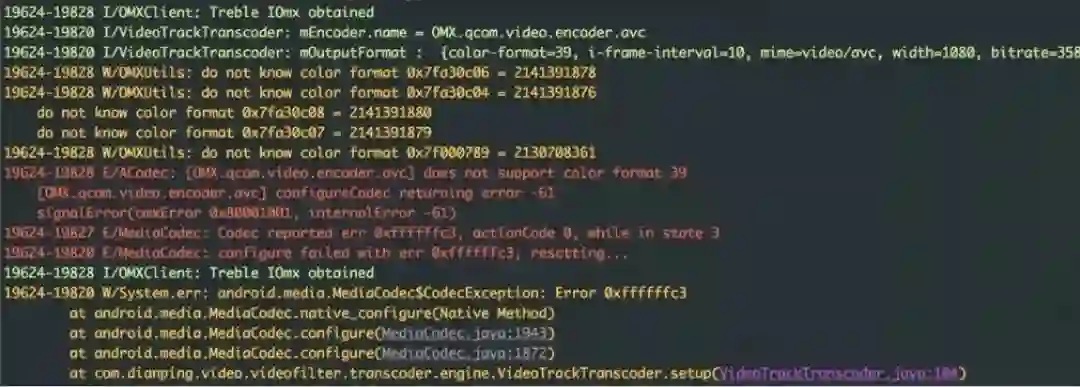 查阅大量资料,也没能解释清楚这个异常的存在。基于日志错误信息,并通过系统源码定位,也只是发现是了和设置的参数不兼容导致的。经过反复的试错,最后确认是部分编解码器只支持偶数的视频宽高,所以我们对视频的宽高做了偶数限制。引起该问题的核心代码如下: