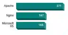 《财富》千强中最流行的 Web 服务器名单完全不出所料。前三名分别是 Apache、Nginx 和微软 IIS。由于 CDN 提供商隐藏了 Web 服务器,因此这些 Web 服务器的实际数量可能会更多。许多 CDN 提供商不提供 Server: HTTP 标头,因此这些站点的结果中没有数据。