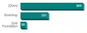 当下接触网站技术工作的人们都很熟悉这两种技术。就算我们知道它们有多流行,看到这两种资源的使用量如此之大也是很惊讶的。超过一半的《财富》千强 网站使用了 jQuery,bootstrap 则超过 25%。