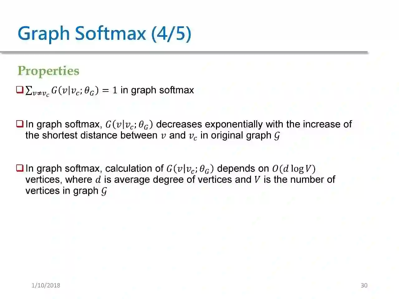 3. 在 graph softmax 的计算中,计算只会依赖于 O(d log V)。d 是图中每个节点的平均度数,V 是图 G 中的节点大小。这个数字会明显小于 softmax 的复杂度。