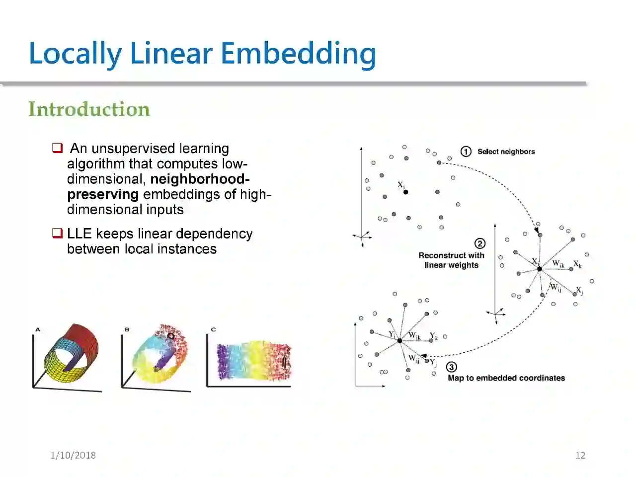 Locally Linear Embedding 是一种典型的流形学习方法,它是指将高维空间中的输入映射到低维空间,并且在低维空间中保持邻居之间的线性依赖关系。