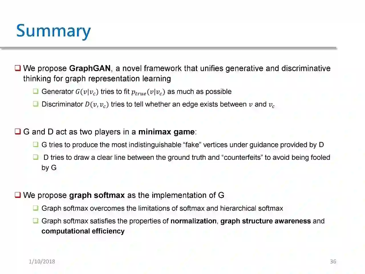 第二部分,我将为大家介绍我们发表在 AAAI 2018 上的一篇论文 GraphGAN: Graph Representation Learning with Generative Adversarial Nets。