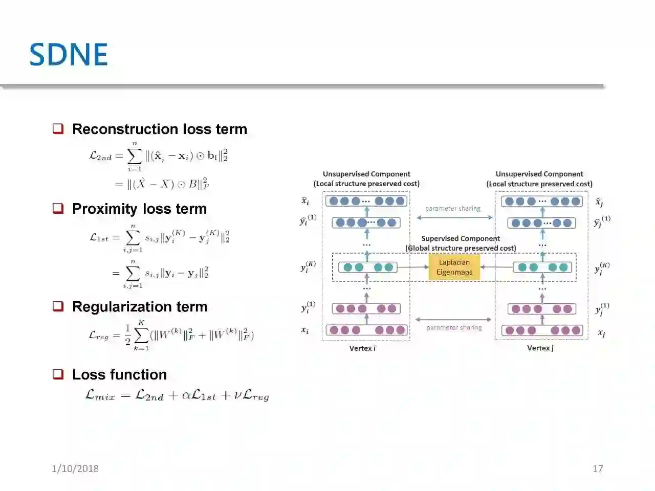 最后一篇是 SDNE,全名为 Structured Deep Network Embedding。这篇文章发表于 KDD 15,其本质就是基于 auto encoder 的一种 network embedding。