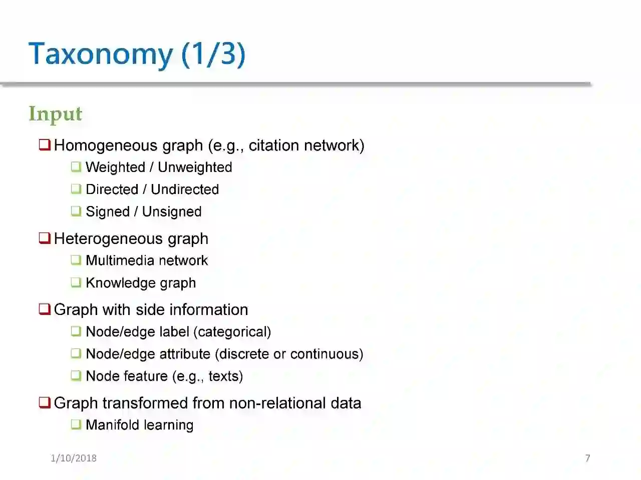 首先按输入进行分类,既然是 GRL,那么其输入肯定是一张图,但图的种类有很多: