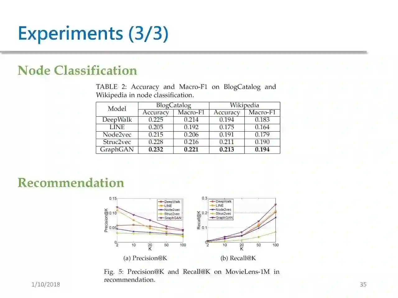 随后,他还以第一作者的身份,为大家解读了上海交通大学、微软亚洲研究院和香港理工大学在 AAAI 2018 上发表的工作:GraphGAN: Graph Representation Learning with Generative Adversarial Nets。该工作引入生成对抗网络(GAN)的框架,利用生成器和判别器的对抗训练进行网络特征学习。
