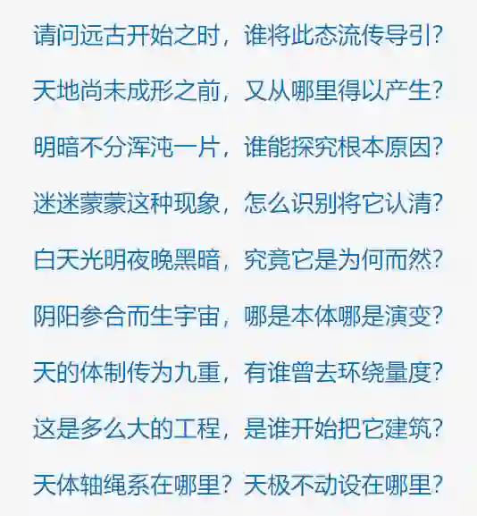 中国主体文化不提倡去讨论《天问》中那些想不明白的时空问题。比如,